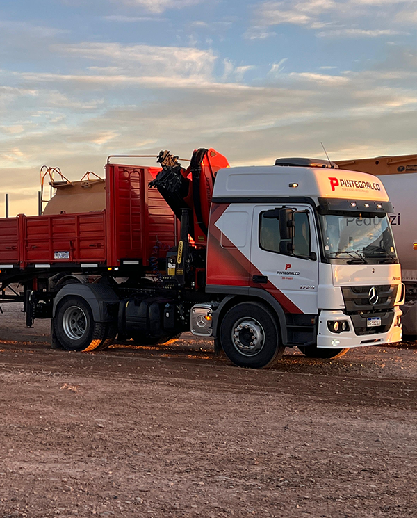 Contamos con vehículos habilitados para poder ingresar a yacimientos y poder operar. Semirremolque con hidrogrúa de 5.800 kg al pie. Camiones con chasis y caja, Camilla para vehículos. Personal capacitado para operar Hidrogrua y eslingador.